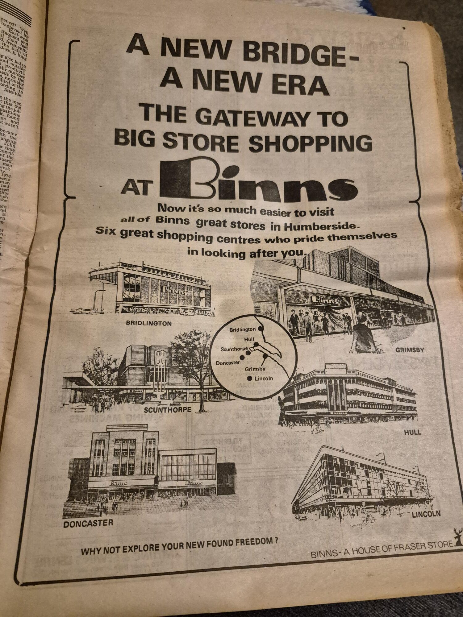 Binns remained a popular department store throughout the late 20th century. In 1985, House of Fraser invested £3.25 million in the Grimsby Binns store.